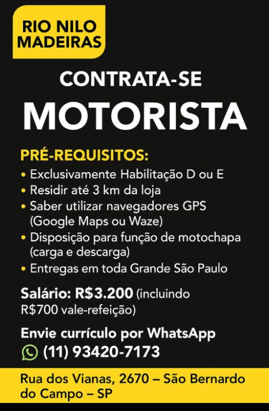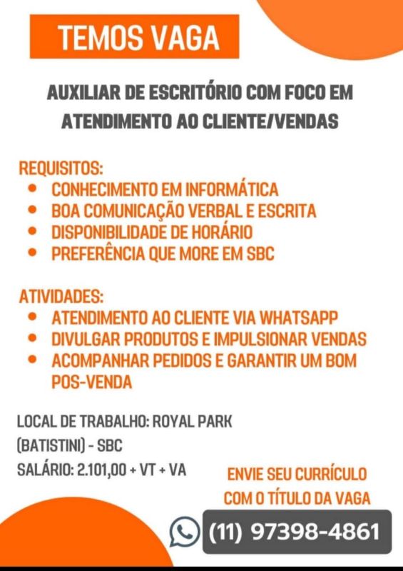 VAGAS DE EMPREGOS com indicações diversas, pode ser que algumas vagas tenham sido preenchidas.